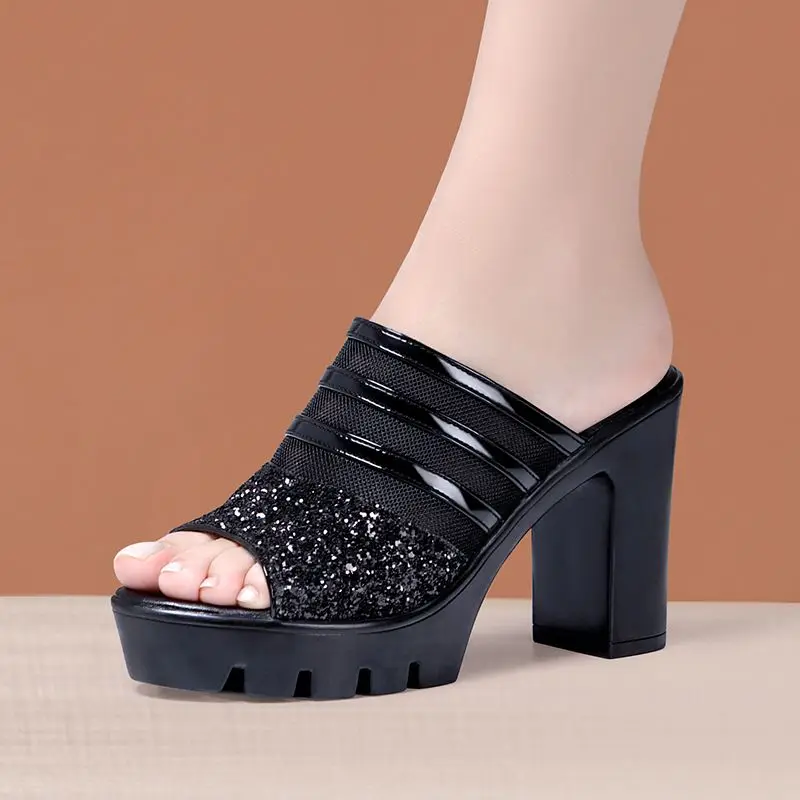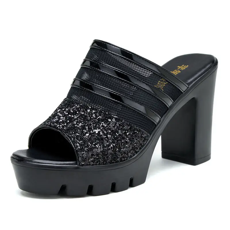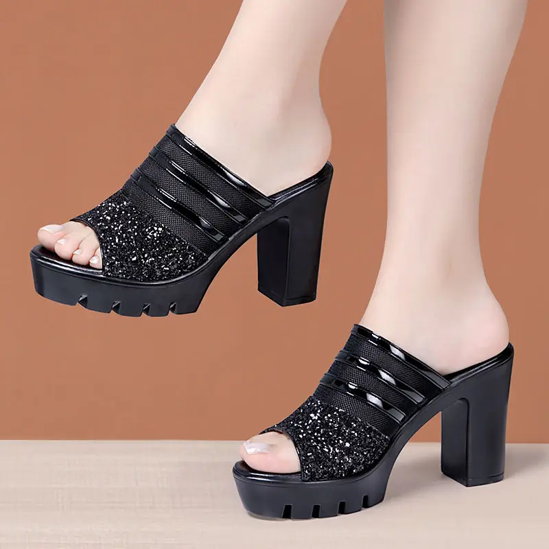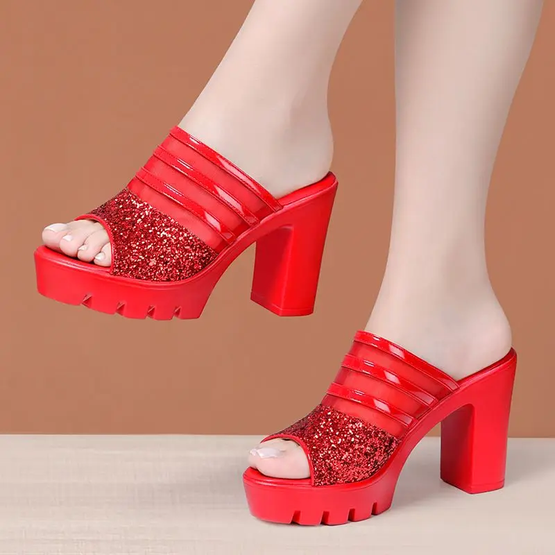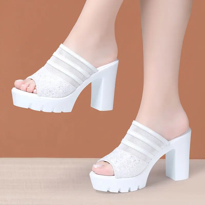 Шлепанцы из натуральной кожи, на платформе и высоком каблуке, размеры 32-43