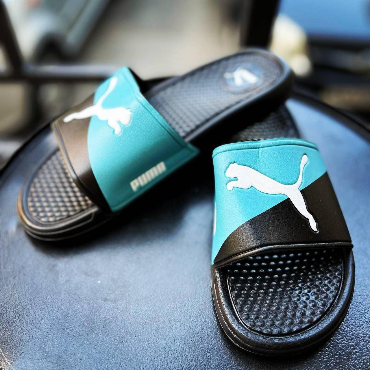 Шлепанцы мужские летние тапки Puma (Пума) черые, бирюзовые, Бирюзовый