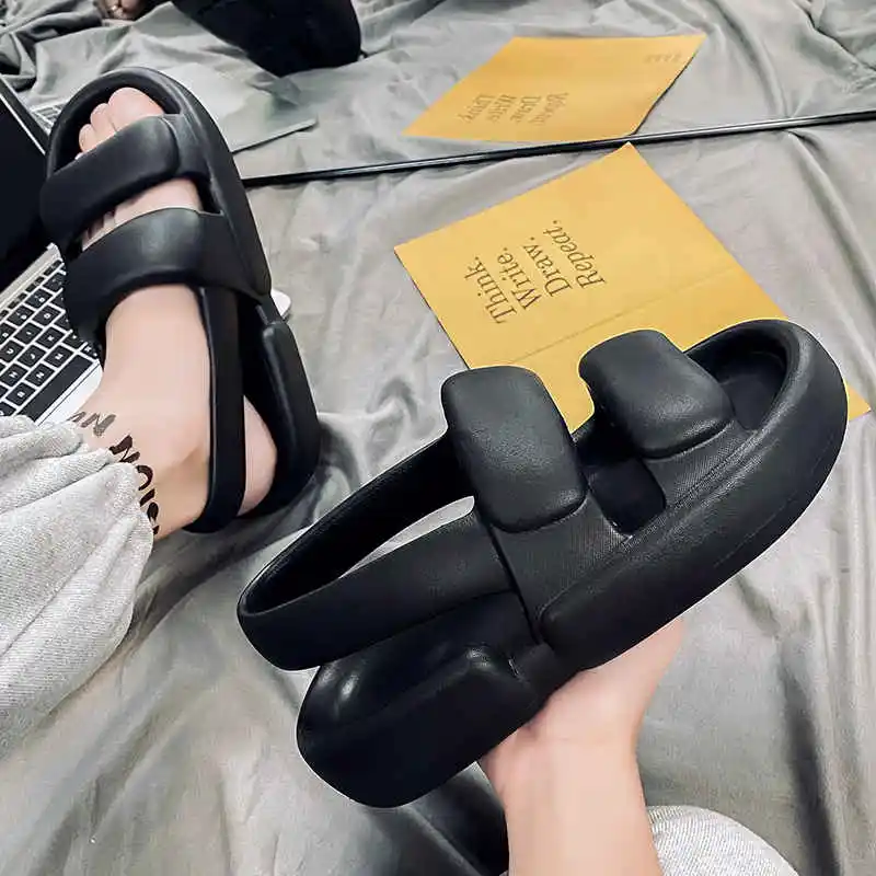 Шлепанцы на платформе для мужчин и женщин, сандалии из кожи, Нескользящие, обувь для пляжа и тенниса, увеличивающие рост