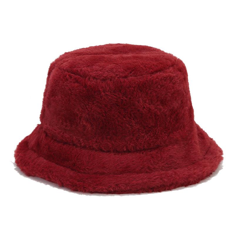 Шляпа Женская Мода Осень и Зима Утолщенная Плюшевая Шляпа-Ведро из Искусственного Кроличьего Меха Теплая Шляпа-Ведро Однотонная Шляпа-Ведро (54-58cm) can be worn
