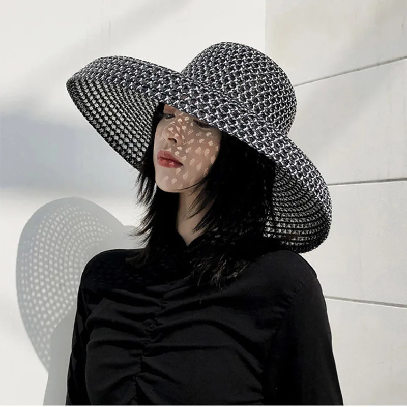 Шляпа женская Соломенная с отверстиями, модная пляжная Панама от солнца, с плоским верхом, в британском стиле, для отдыха на море и отдыха, че...