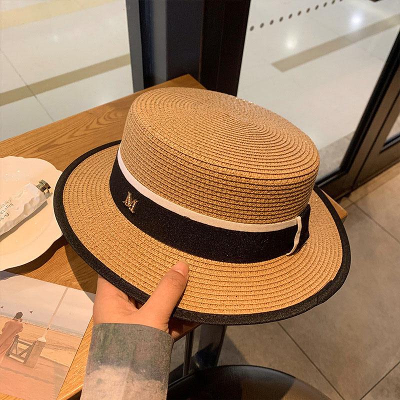 Шляпа женская летняя шляпа для путешествий на пляж, пляжная шляпа, солнцезащитный козырек для защиты от солнца, соломенная шляпа с плоским верхом, британская маленькая свежая шляпа-цилиндр M(56-58cm) хаки