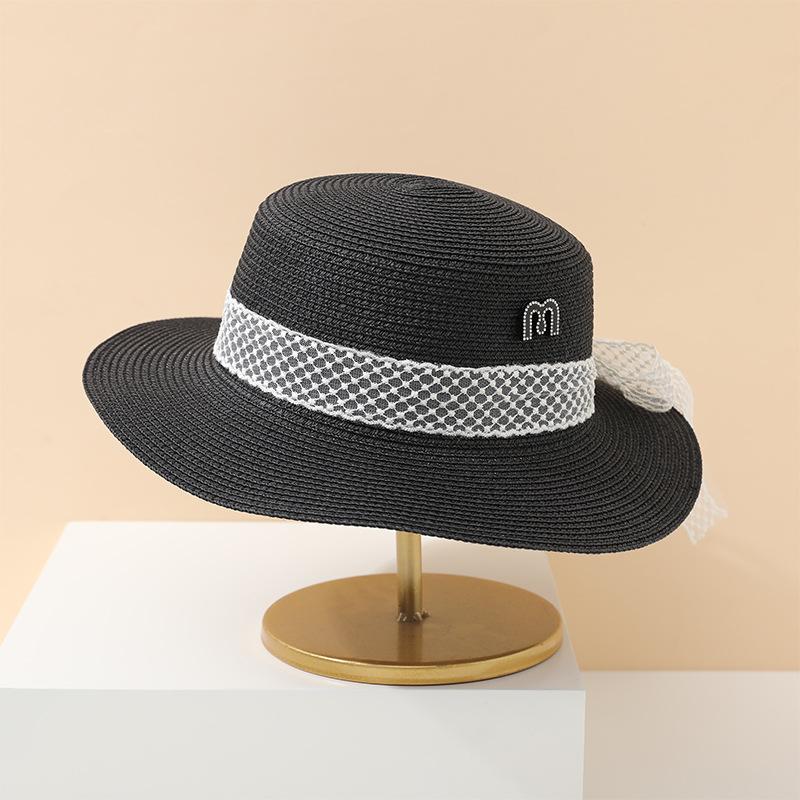 Шляпа женская летняя темпераментная элегантная жемчужно-черная соломенная шляпа весенняя повседневная модная на ремне с козырьком в клетку женская защита от солнца чёрный