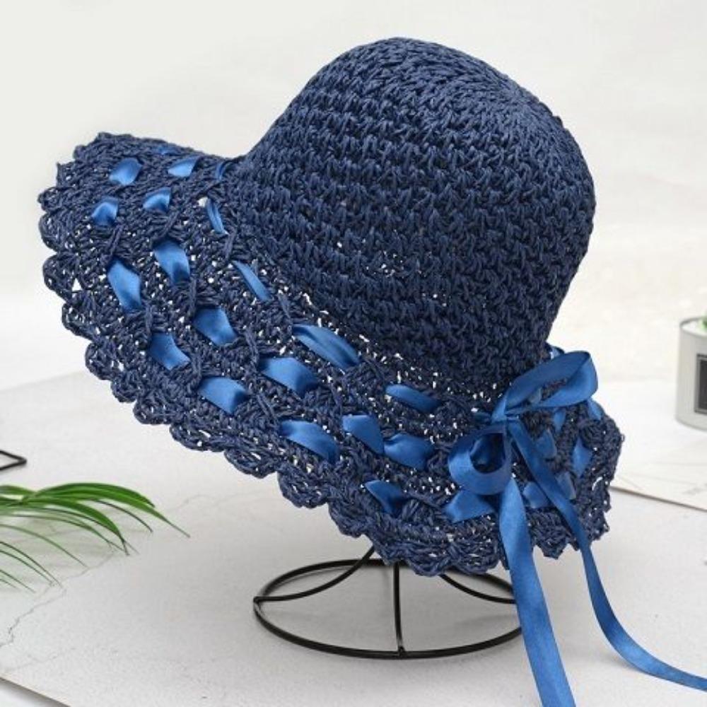 Шляпа от солнца для девочек, летняя, маленькая, свежая, пляжная шляпа, защита от солнца на берегу моря, корейская версия, универсальная, бохо, крутая, соломенная шляпа M(56-58cm) тёмно-синий