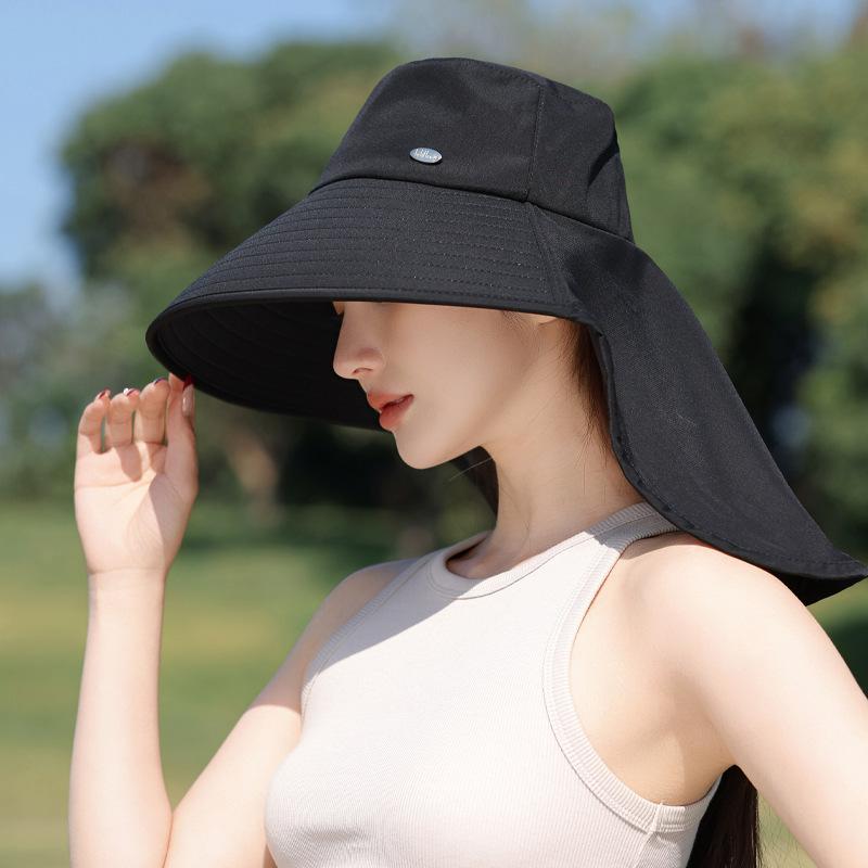 Шляпа от солнца женская ледяная шелковая карнизная шаль солнцезащитная шляпа шейная шляпа для лица уличное УФ-защитное крепление One Size чёрный