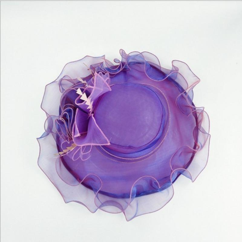 Шляпа от солнца из органзы с широкими полями, модная сетчатая цветочная церковная свадебная шляпа дерби, дышащая уличная пляжная шляпа для путешествий для женщин M(56-58cm)