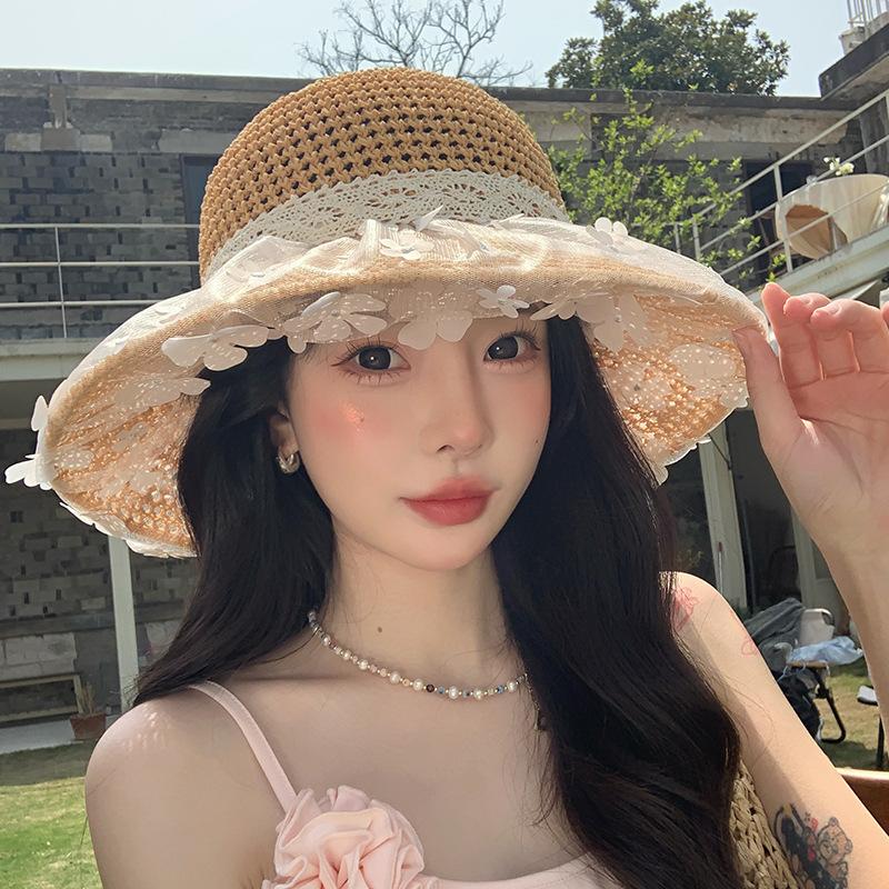 Шляпа от солнца с кружевным цветочным узором и бантом, дышащая травяная шляпа, женская весенняя солнцезащитная шляпа и козырек от солнца one size