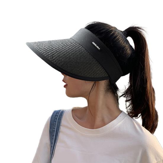 Шляпа от солнца с широкими полями, с открытым верхом, с регулируемой пряжкой, летняя, лоскутная, цветная, женская, аксессуары чёрный