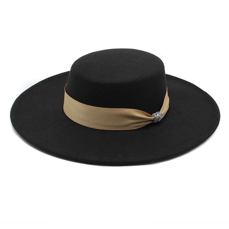 Шляпа с плоским верхом женская британская универсальная ретро бежевая шерстяная черная белая фетровая шляпа 10 см M(56-58cm) чёрный