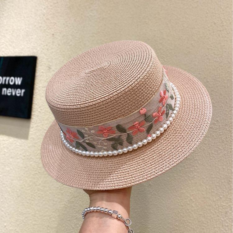 Шляпа с плоским верхом Pearl, женская, весенняя и летняя, для пляжного отдыха, солнцезащитные шляпы, соломенные шляпы, шляпы с плоскими полями M56-58cm розовый