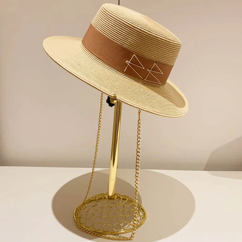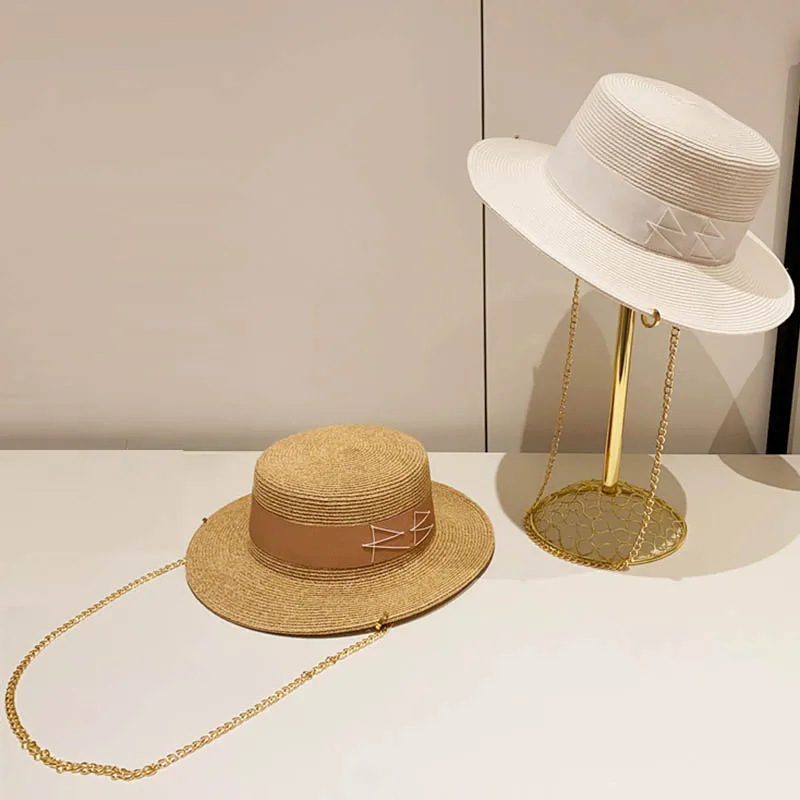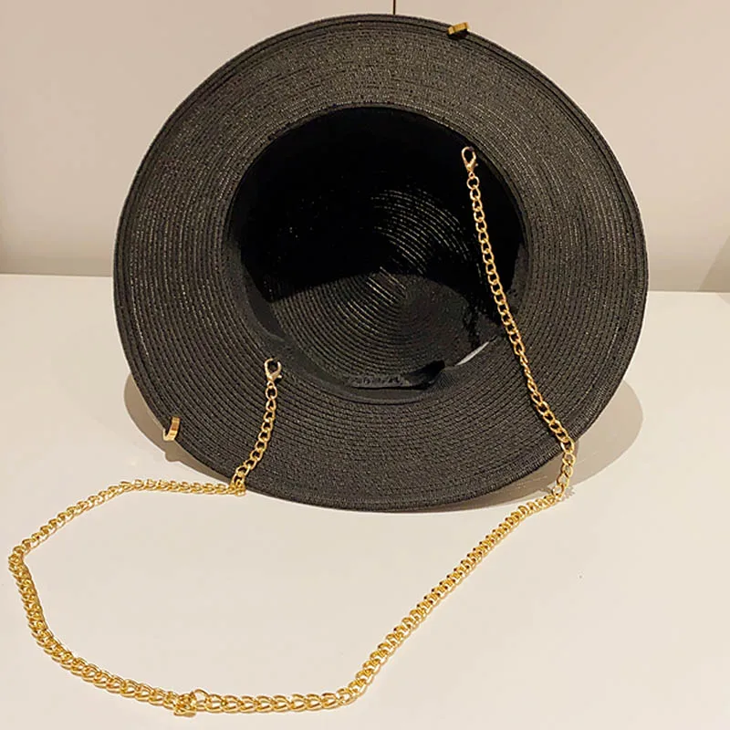 Шляпа с широкими полями для женщин, летняя шляпа с цепочкой, соломенная шляпа, пляжная шляпа от солнца