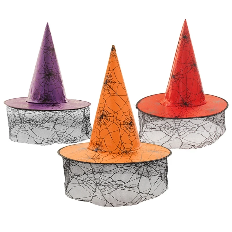 Шляпы ведьмы для Хэллоуина для взрослых и детей, с паутиной вуалью, декор для маскарада, косплея, Прямая поставка