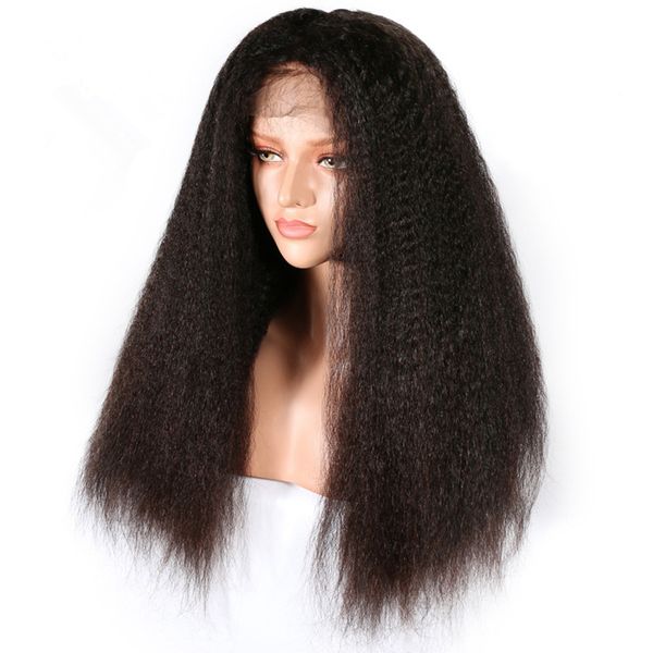 Шнурка Kinky прямая человеческих волос парик 180 плотность для женщин Remy Бразильянин