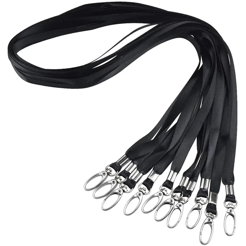Шнурки для шеи, именной значок, ключи, офисные плоские нейлоновые шнурки, Черный шейный ремешок, шнурок с поворотными крючками и зажимами