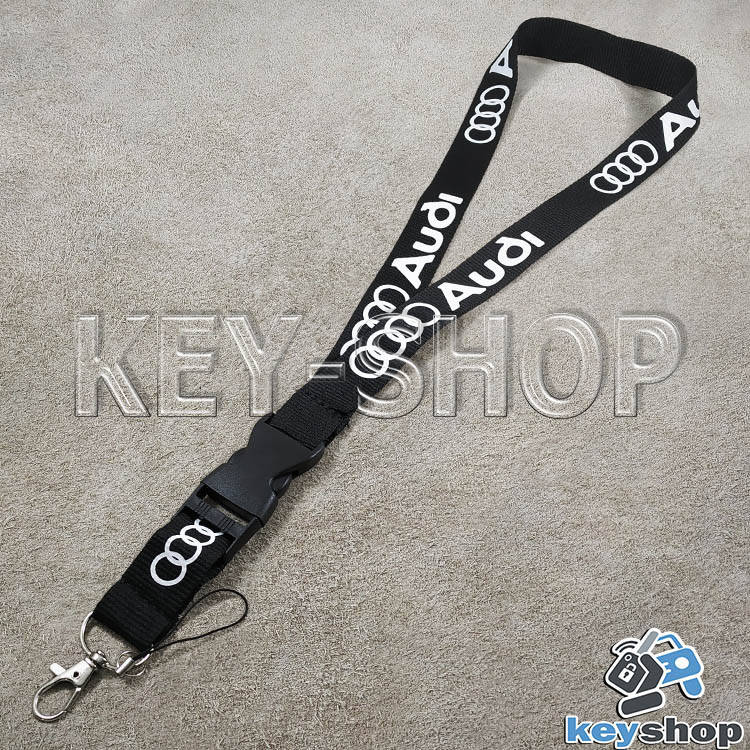Шнурок на шею (черный) для ключей с карабином и логотипом Audi (Ауди)