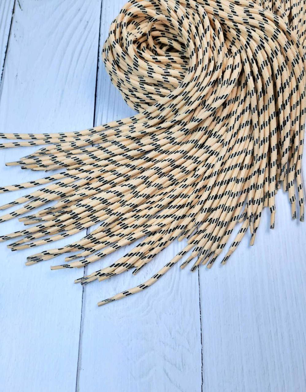 Шнур (текстильный) №29 бежевый и черная полоска с прозрачным наконечником 125см., Черный