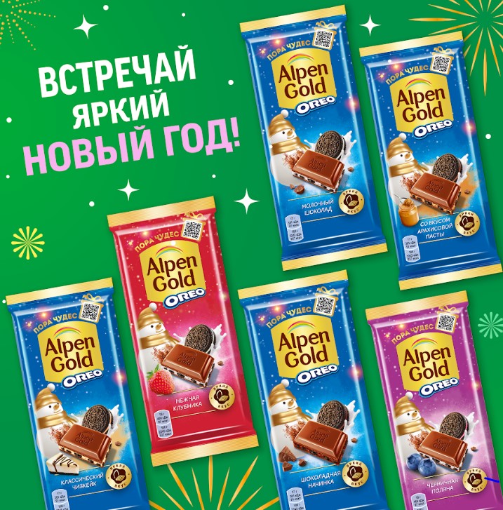 Шоколад молочный Alpen Gold Черничная поляна с кусочками печенья Оrео 85 г