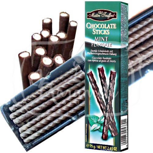 Maitre Truffout Chocolate Sticks Mint - великолепный австрийский шоколад, выполненный в форме тонких палочек из шоколада с мятной начинкой. Продукт обладает необычным вкусом благодаря содержанию масла перечной мяты в начинке и освежающего вкуса. Особенно придутся по вкусу любителям оригинальных вкусовых сочетаний.