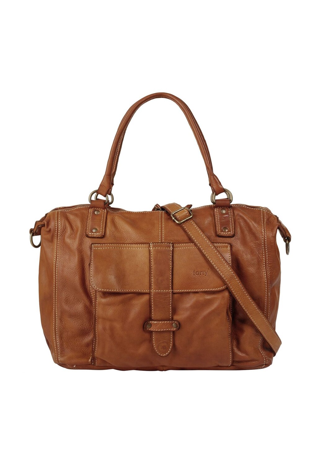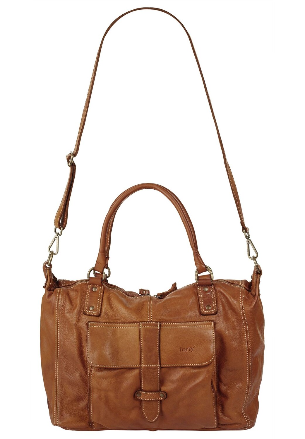 Кожаная сумка-шопер Forty впечатляет во всех отношениях: много места для хранения, нежная кожа и модный винтажный вид. Будь то путешествие или повседневная жизнь – с этой сумкой в теплом коньячном цвете вы сможете выглядеть стильно и модно везде! * Сделано в Италии * 100% воловья кожа, стираная * Очень мягкая на ощупь * Большое основное отделение на молнии * 1 внутренний карман на молнии * 2 накладных кармана внутри * 2 усиленные ручки для переноски * 1 съемный регулируемый ремень через плечо * 1 внешний карман с магнитной застежкой * детали золотой заклепки