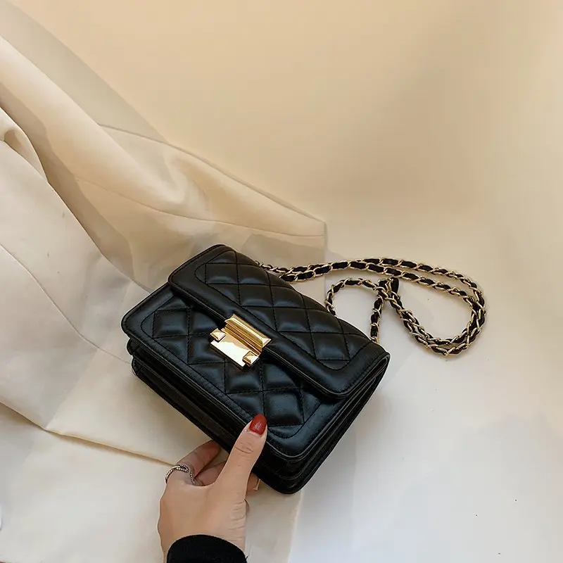 Leather Shoulder Bag Women's Bag 2020 Winter New Trendy Niche Texture Rhombus Chain Bag Fashion All-match Messenger Shoulder Bag