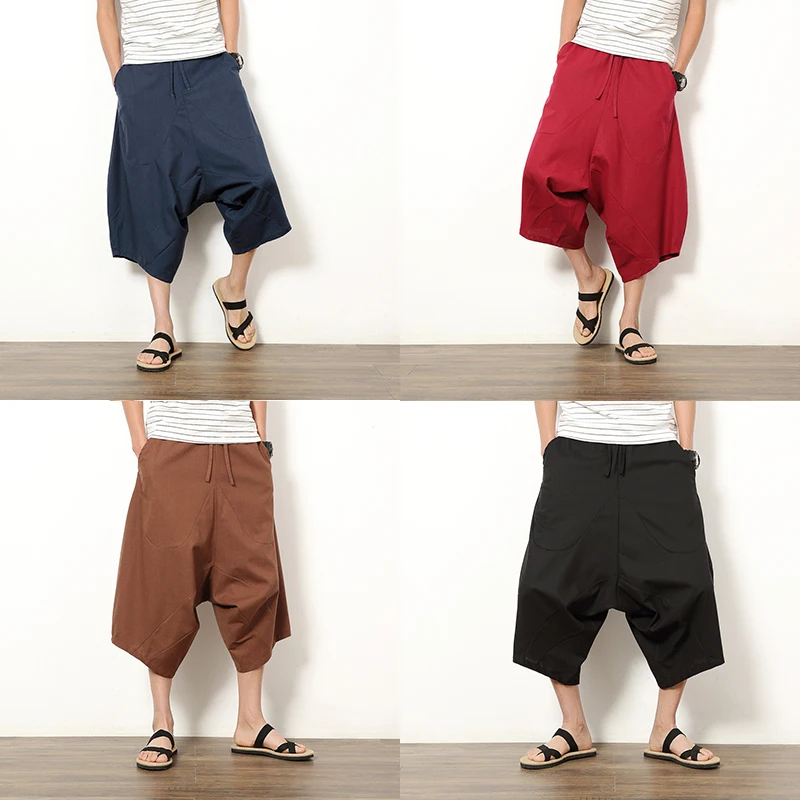 Шорты-бермуды мужские летние из хлопка и льна, Свободные повседневные бермуды с завязкой на талии, размеры до 5XL