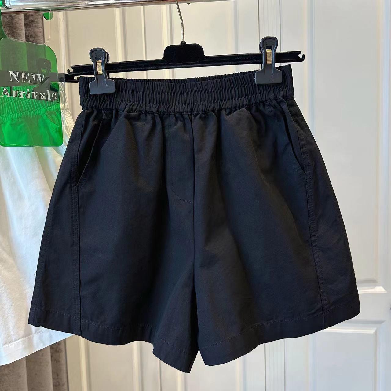 Шорты больших размеров с высокой посадкой и широкими штанинами, с эластичным поясом и карманами для женщин - Повседневные Весна/Осень 2024 M чёрный