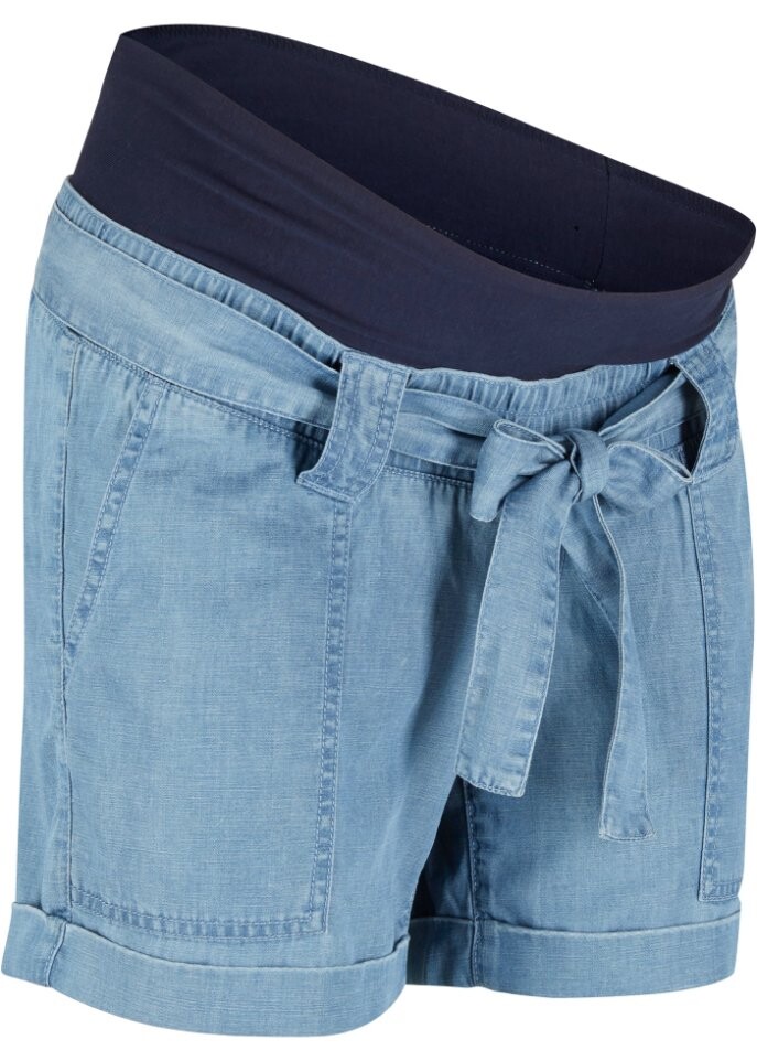Шорты для беременных из льна в джинсовом стиле Bpc Bonprix Collection, голубой, Синий, Шорты для беременных из льна в джинсовом стиле Bpc Bonprix Collection, голубой