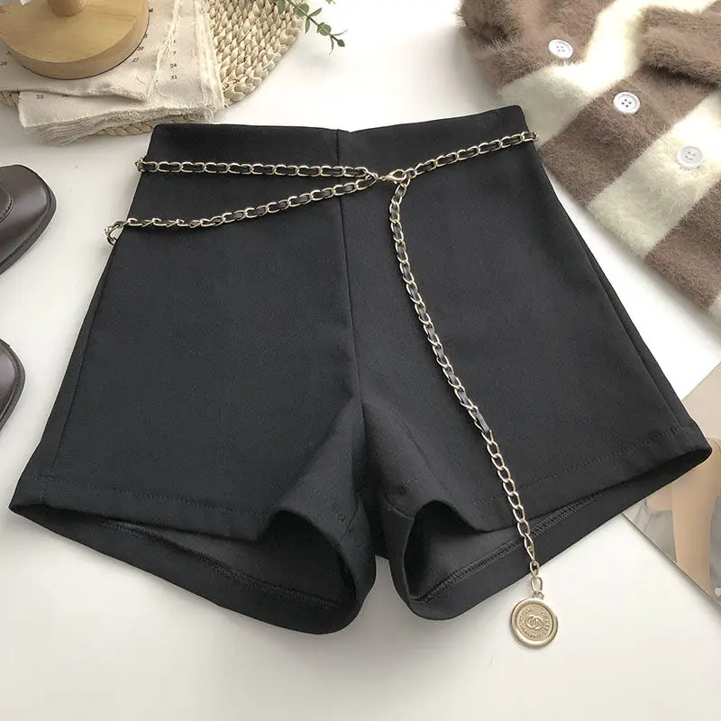 Шорты женские однотонные тонкие с высокой талией, повседневные модные прямые костюмные, в стиле Харадзюку, одежда на лето, C46
