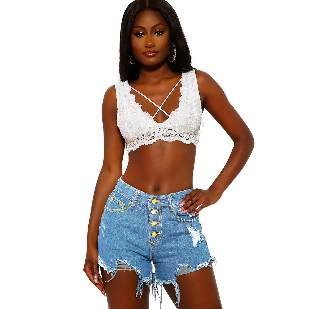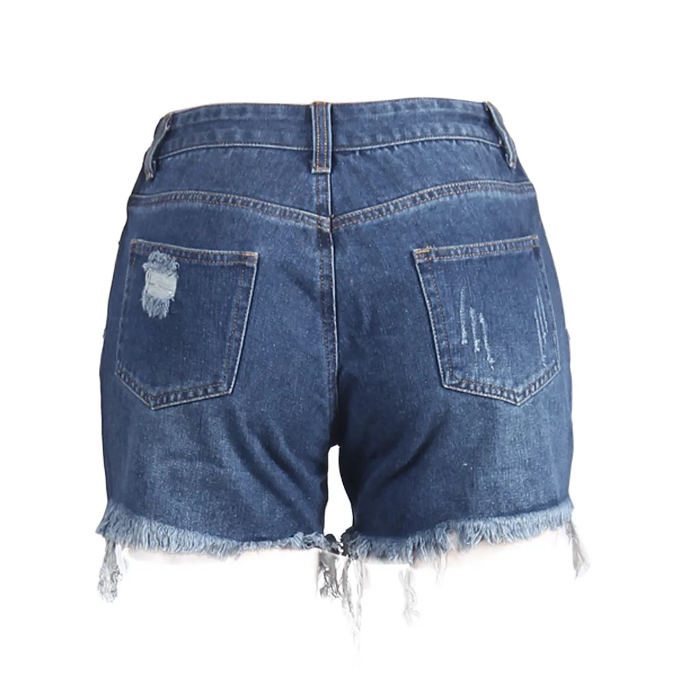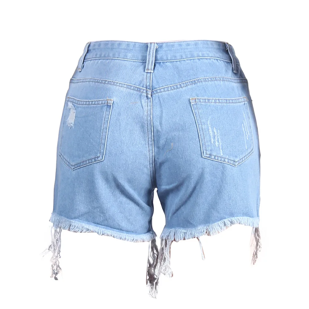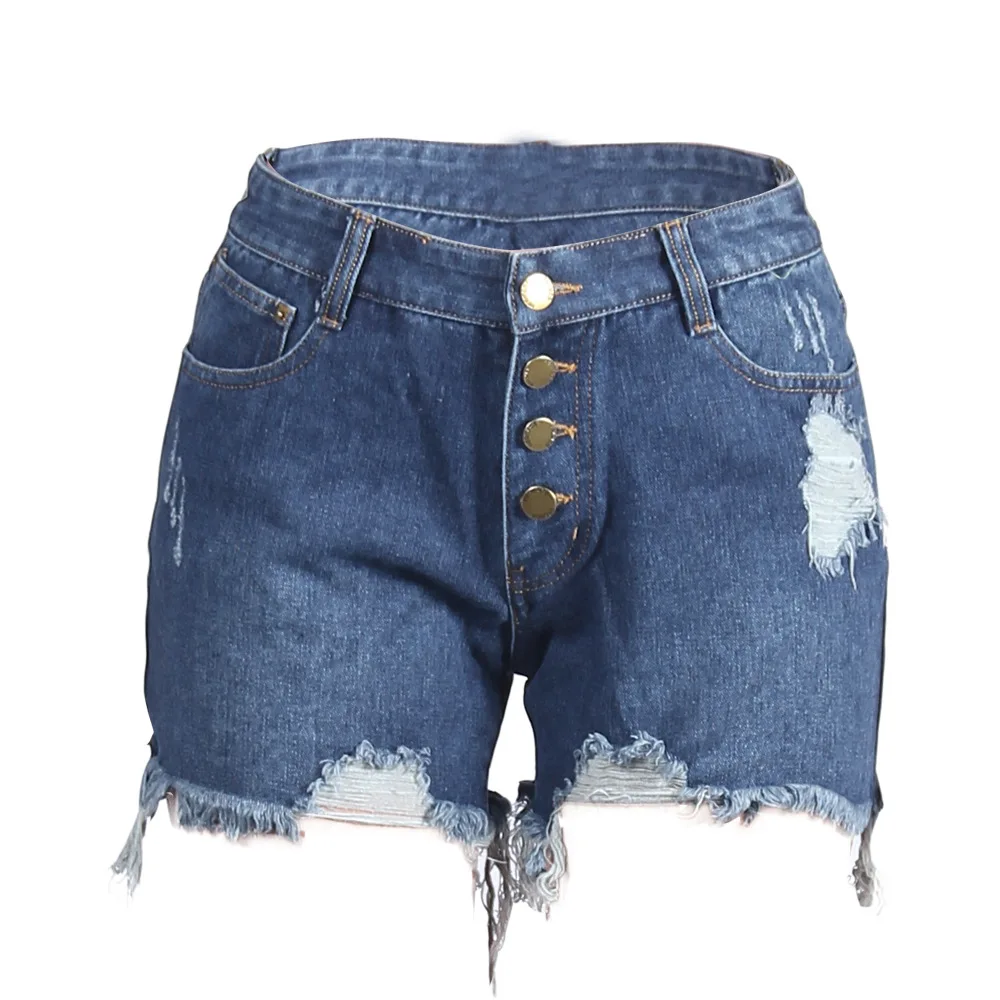 Шорты женские рваные из денима с завышенной талией, на пуговицах