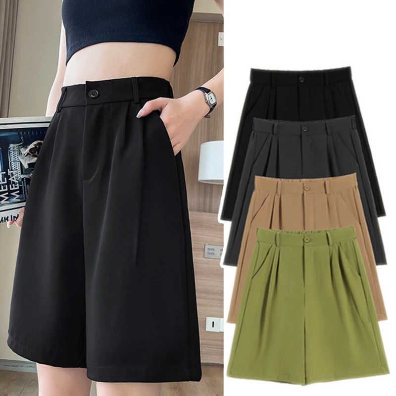 Шорты женские с завышенной талией, с широкими штанинами, до колена