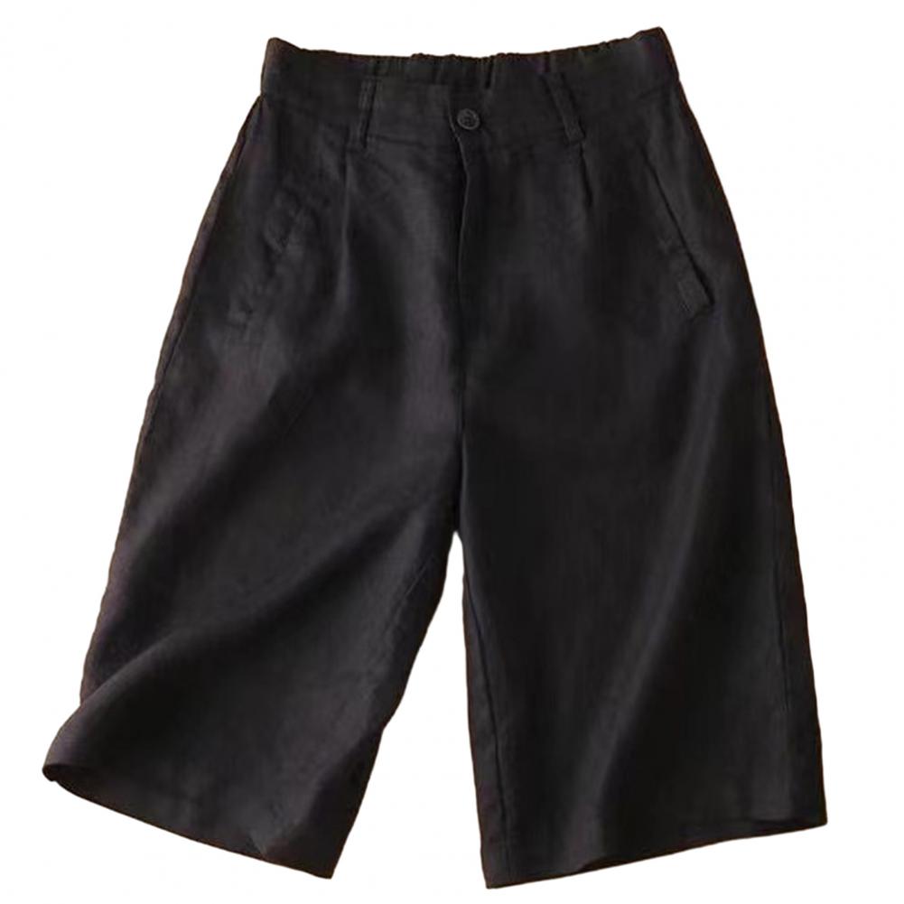 Шорты из хлопка и льна, женские, элегантные, с высокой талией, белые, А-силуэта, широкие брюки, облегающие, прямые, широкие брюки, рабочие шорты S чёрный
