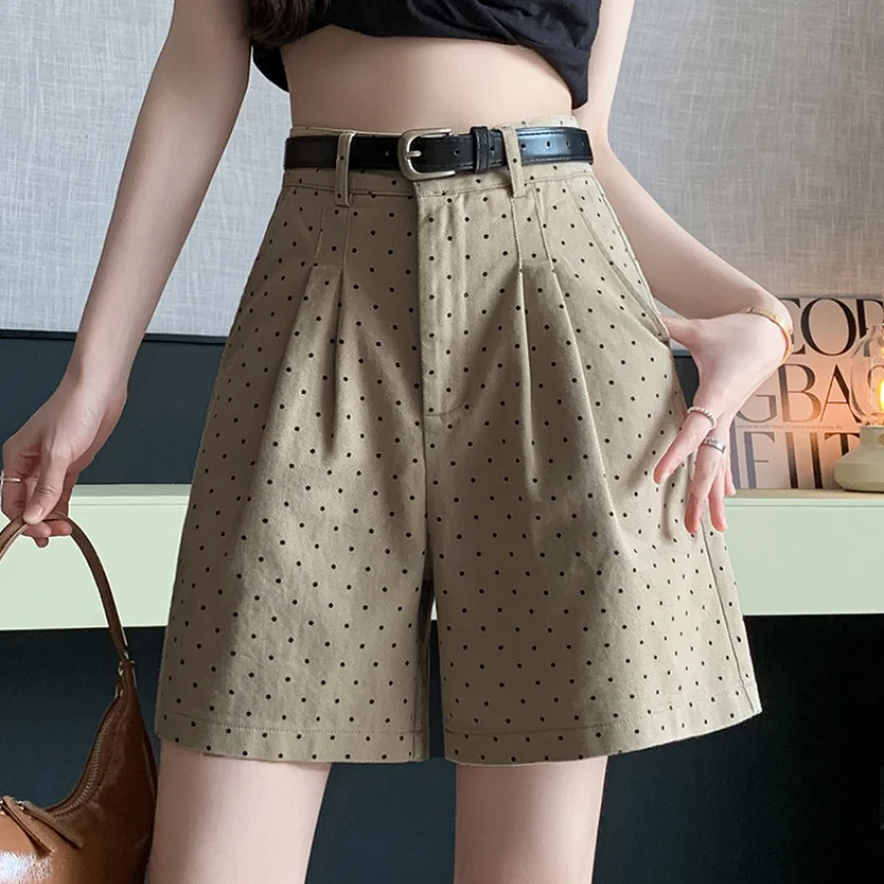 Шорты-карго женские с широкими штанинами, в горошек, с завышенной талией