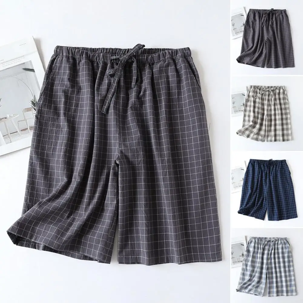 Шорты мужские летние в клетку с эластичным поясом и боковыми карманами