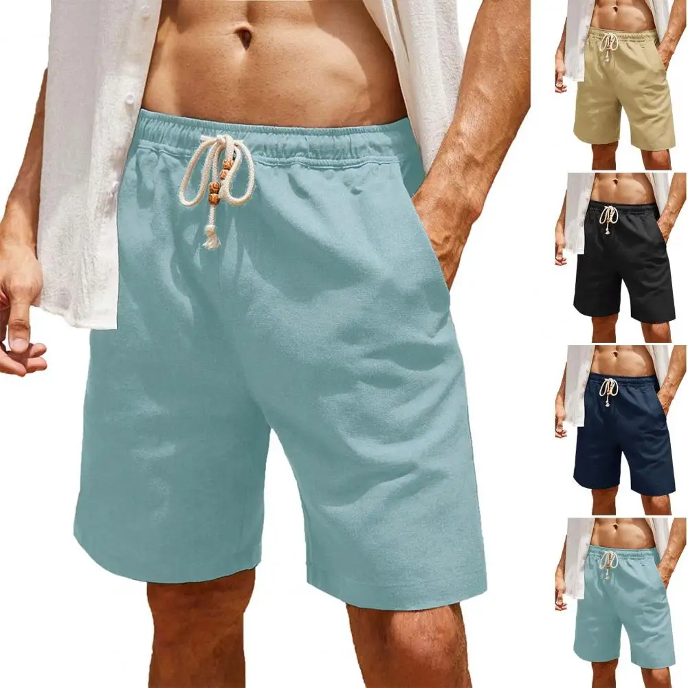 Шорты мужские с эластичным поясом, однотонные свободные спортивные штаны со средней посадкой, с карманами и широкими штанинами, уличная одежда для фитнеса