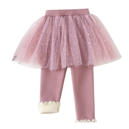 Edvintorg Winter Kids Pants Girls Clearance Solid Lace Warm Fleece Lined Leggings Elastic Cotton Sweatpants Pants 2-8Years Girls Athletic Pants Christmas Gifts