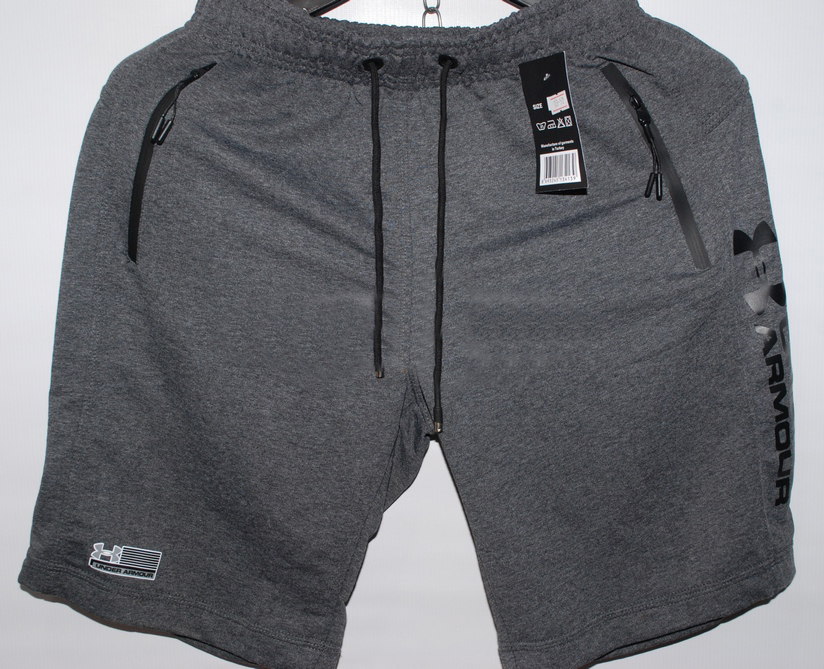 Мужские трикотажнные шорты under armour. В поясе шорты на резинке,также присутствует шнурок для регулировки талии, низ прямой,
