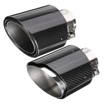66mm to 114mm Auto Car Exhaust Tail Pipes Glossy Carbon Fiber Muffler Tip Tail End Universal Stainless Steel Straight Flange