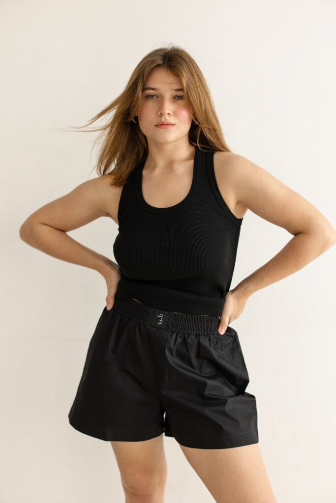 Шорты черные без разрезов "Для плотных завтраков" - Размер L