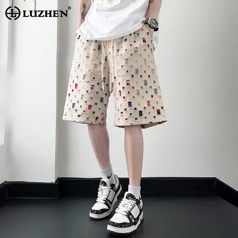 Шорты LUZHEN LZ4230 мужские в клетку, модные уличные повседневные штаны с принтом, яркие цвета, лето 2024