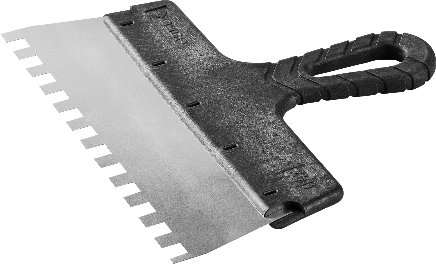 Шпатель Зубр МАСТЕР, зубчатый, лезвие 250мм, размер зубьев 10х10мм, нержавеющая сталь, для клея (10078-25-10), Стальной