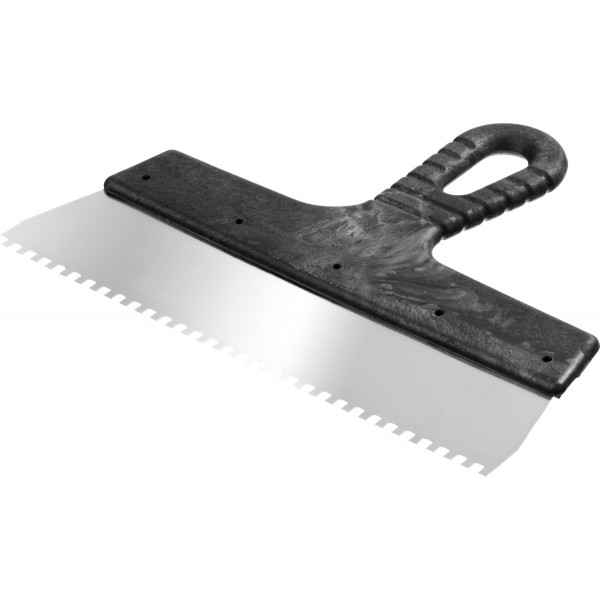 Шпатель СИБИН, зубчатый, лезвие 250мм, размер зубьев 4х4мм, нержавеющая сталь, для клея (10089-25-04_z01), Стальной, 0