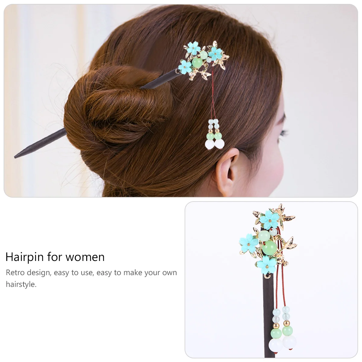 Шпилька для волос, аксессуары для волос в винтажном стиле, Тиара для волос, деревянная кисточка