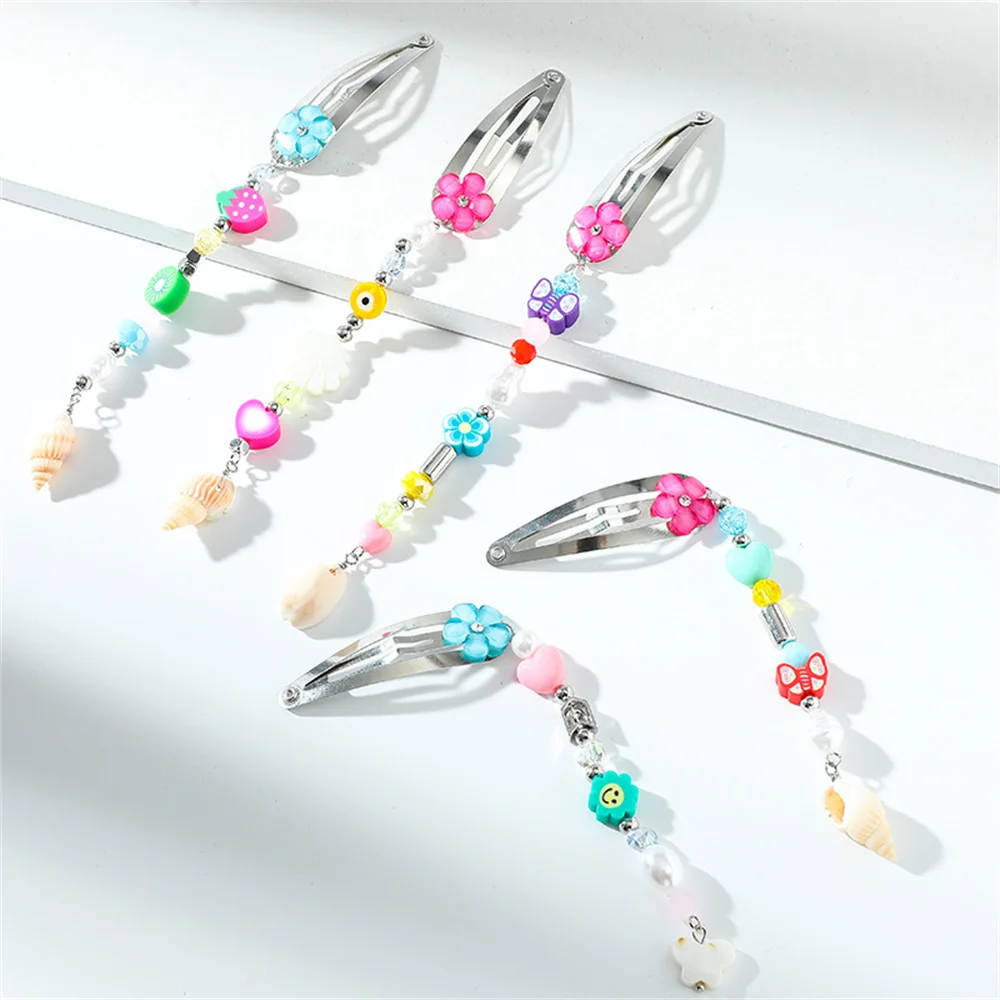 Шпилька для волос для девочек, милая заколка с искусственным жемчугом и полимерным кулоном, креативная ручная работа, головной убор