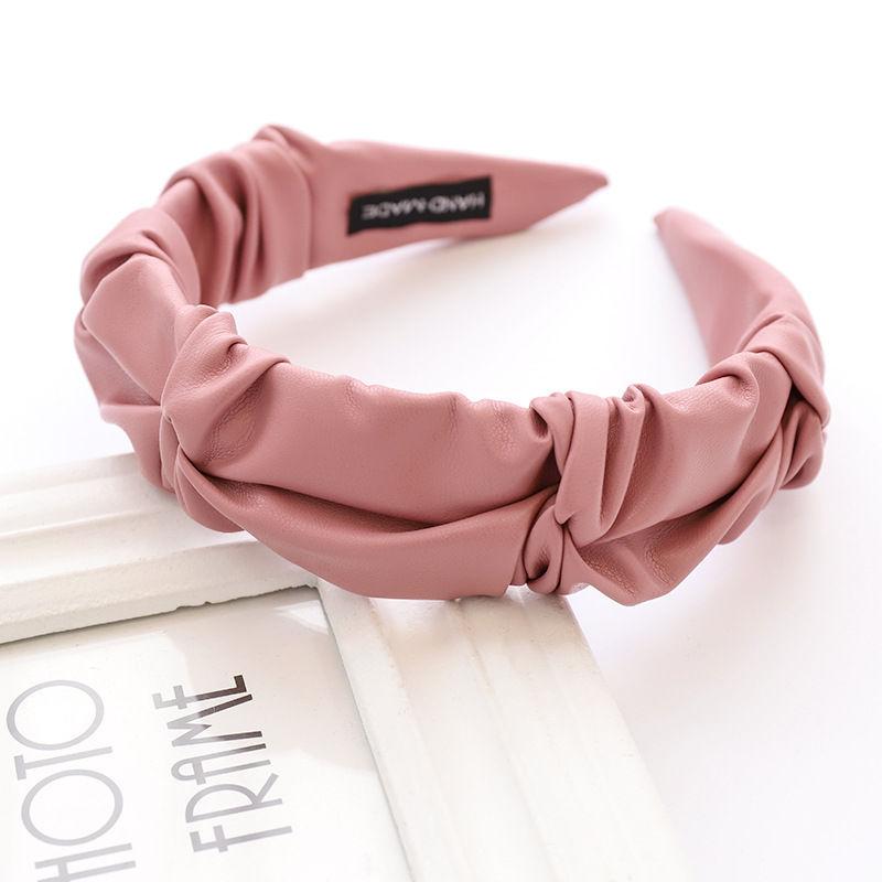 Шпилька для девочек, головной убор, аксессуары для волос, плиссированная повязка на голову из искусственной кожи, модная 17*4cm розовый