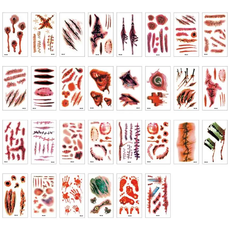 Шрамы и раны на Хэллоуин, наклейки на тело и лицо, имитация шрамов, водонепроницаемая поддельная кровавая рана, 30 шт.