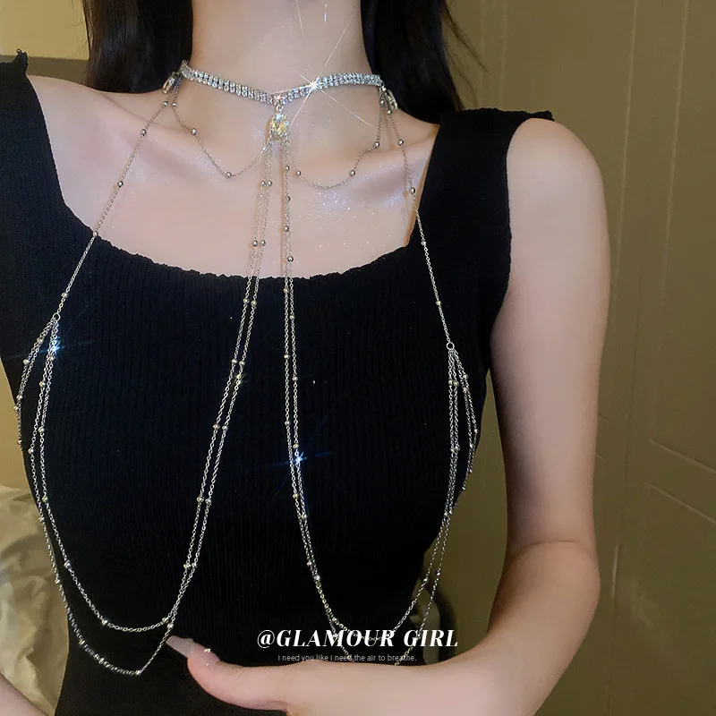 Luxury Chic Shiny Crystal Shoulder Chain Wedding Tassel Necklace Jewelry for Women Harness Sexy Decorations Lingerie Apparel