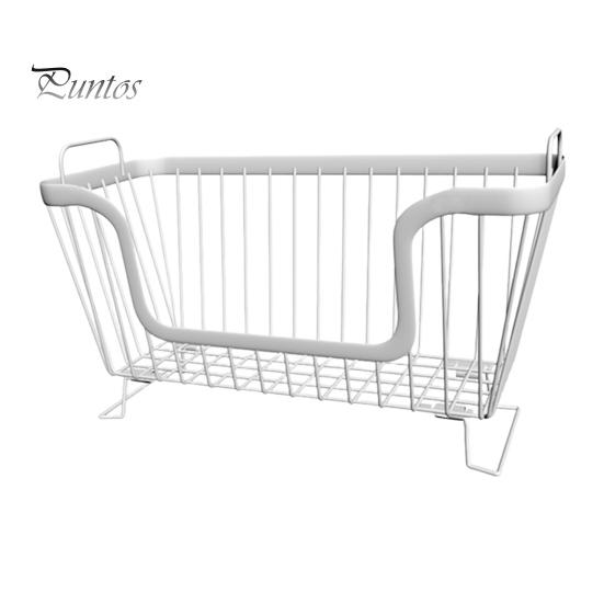 Штабелируемая металлическая корзина для хранения, высокая твердость, недеформируемая, большая емкость, полая конструкция, корзина для хранения в морозильной камере с ручкой белый