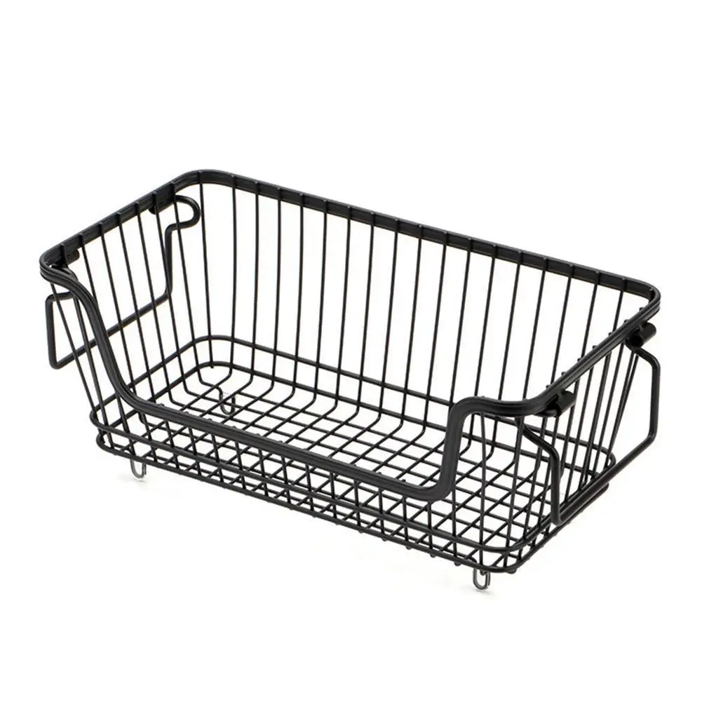 Штабелируемые проволочные корзины для хранения и организации буфета-набор из 2 корзин для хранения кладовой с ручками, прочная металлическ...