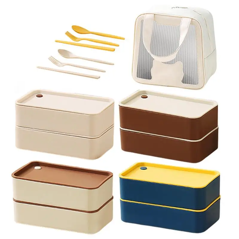 Штабелируемый Ланч-бокс, 2-х слойный контейнер для еды, безопасный Ланч-бокс, герметичный контейнер для еды для путешествий, кемпинга, пикника