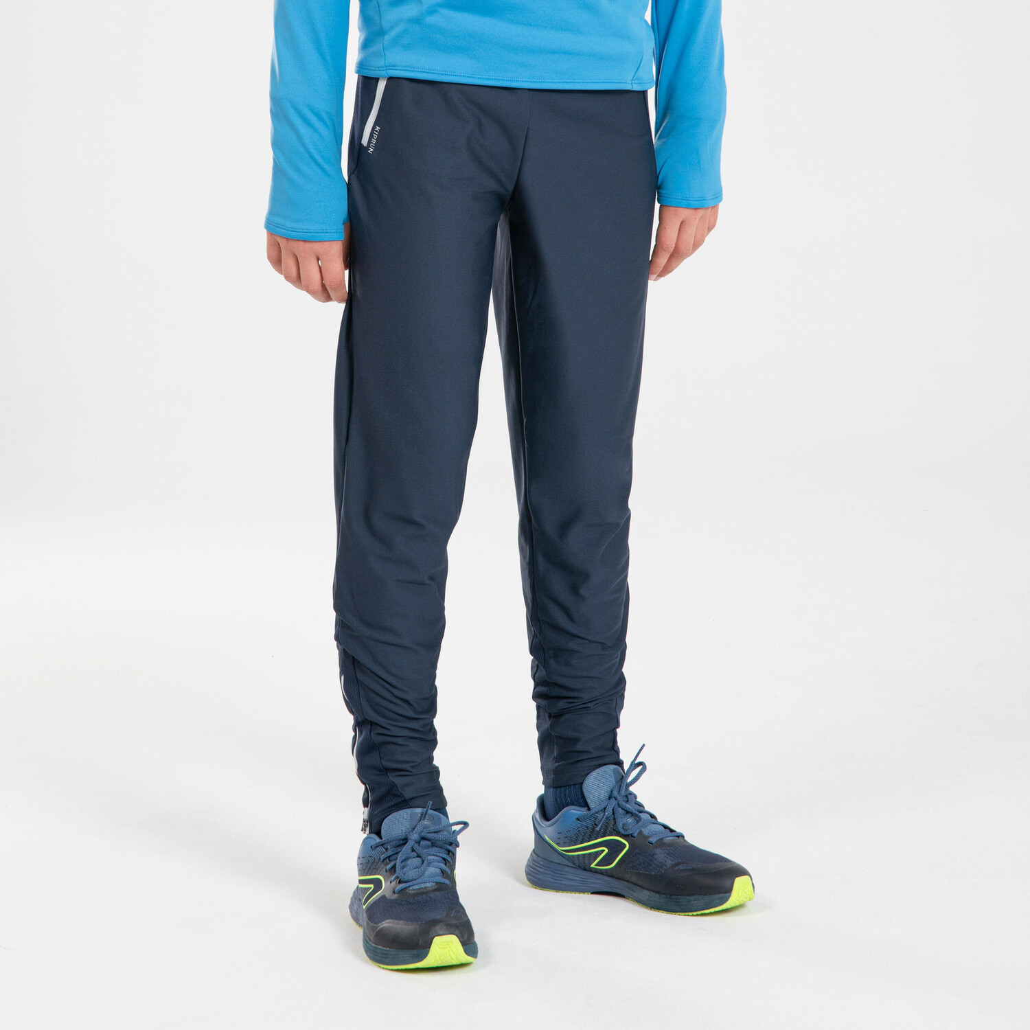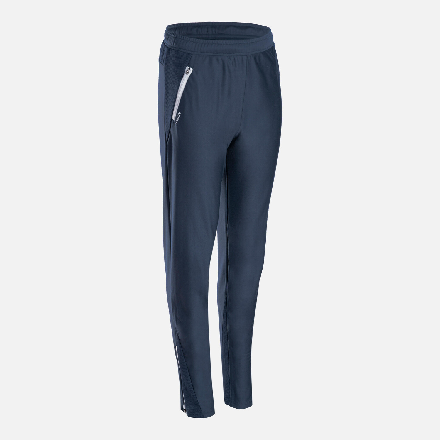 Штаны для бега теплые Kiprun Warm на молнии детские темно-синий/серый, темно-синий